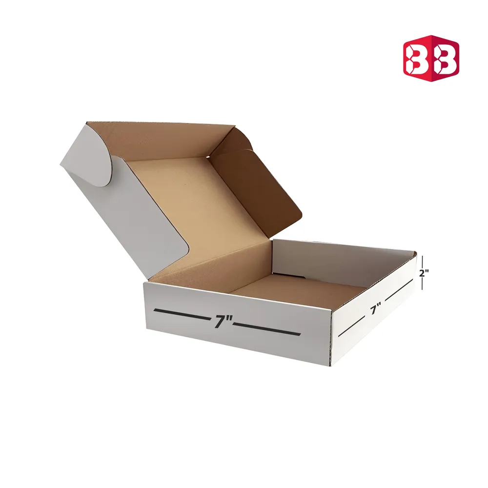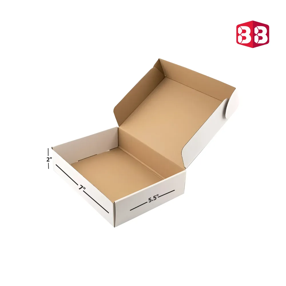 Size: 13x9x2 inch (33.02 x 22.86 x 5.08 cm)Color: Natural White KraftMaterial: 3-Ply Corrugated BoardIdeal for: Documents, T-Shirts, Flat ProductsCustom Printing Available for Bulk Orders