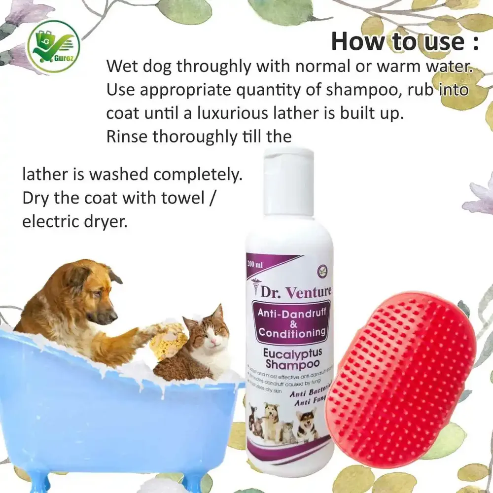 Dr Venture Anti-Dandruff & Conditioning Eucalyptus Dog & Cat Shampoo Anti-Bacterial & Anti-Fungal 200 ML Pack of 2