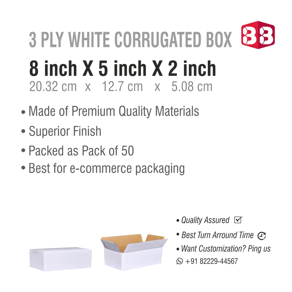 Box Brother 3 Ply White Cardboard Box Size: 8x5x2 Length 8 inch Width 5 inch Height 2 inch 3Ply custom cardboard packing boxes