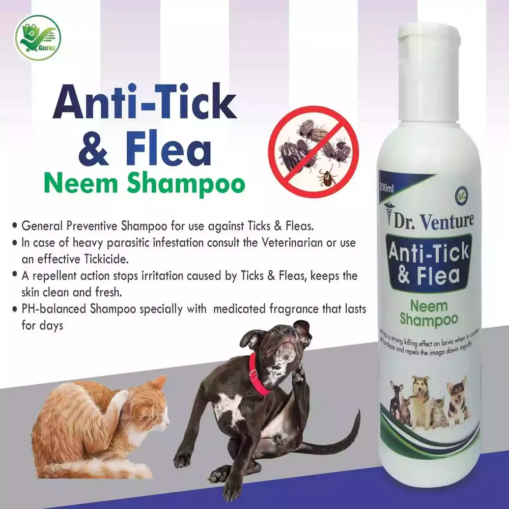 The Dr. Venture Anti-Tick and Flea Dog Shampoo and Anti Tick Spray Bundle: Your Ultimate Pet Care Solution The finest treatment for your pets should involve defense against bothersome ticks and fleas. Two potent products are included in the full kit that Dr. Venture offers: Anti-Tick and Flea Neem Dog Shampoo (200 ml) and Anti-Tick Spray and Flea Spray (200 ml). Let's go into the specifics of these wonderful options for your cherished cats and dogs. A powerful yet gentle flea and tick repellent for dogs and cats is Dr. Venture Anti-Tick Spray. It stands out as a healthy substitute that doesn't sacrifice efficacy. On contact, it kills and repels fleas, flea larvae, and ticks thanks to its special formula. Your pets will feel relief right away. The formulation of Dr. Venture Anti Tick Spray and Flea Spray is one of its distinguishing qualities. It is completely secure and AYUSH Department-approved. This gives pet owners peace of mind knowing that they are utilizing a product made with the utmost care and in accordance with safety regulations. You seek an immediate-acting remedy for tick and flea infestations in your cherished pets. The unique formulation of Dr. Venture's Anti Tick Spray offers prompt and efficient results. Neem tree leaves, purified water, aloe vera, and other strong ingredients make up this fully hand-made mixture. This special mixture stops the tick and flea life cycle, providing relief for your dogs and cats. Dr. Venture's Anti-Tick Neem Dog Shampoo completes the set. Neem and aromatic oil are used in the formulation of this shampoo to provide your dog buddies with a second layer of defense. It ensures the cleanliness and health of your pet's coat while providing efficient protection against ticks and insects. It's simple to use Dr. Venture Anti-Tick and Flea products. Simply remove the caps, give the bottles a thorough shake, and then use them as necessary. To eradicate the tick and flea life cycle from your entire environment, use the spray on your pets, bedding, furniture, flooring, and carpets. The all-inclusive bundle from Dr. Venture gives complete defense for both your home and your pets. By disrupting the tick and flea life cycle, it stops reinfestations and provides long-lasting relief. As a result, your beloved friends will live happier, healthier lives and require fewer trips to the veterinarian. Dr. Venture's Anti-Tick and Flea treatments stand out as natural and secure options in a world where pet owners are increasingly seeking them out. They offer you the comfort that comes with using natural pet protection solutions that harness the power of nature. Don't cut corners when it comes to the health of your cats and pets. For an all-natural, efficient, and secure answer to the age-old issue of ticks and fleas, pick the Dr. Venture Anti-Tick and Flea Dog Shampoo and Spray Bundle. They are the perfect option for pet owners who want nothing but the best for their animal family members thanks to their AYUSH Department-approved formula and fast-acting, hand-crafted blend of components. Protect your pets, and make sure they have the relief and comfort they need. With Dr. Venture's Anti-Tick and Flea treatments, you can say goodbye to ticks and fleas and hello to a happier, healthier life for your cherished dogs and cats.About Anti Tick Shampoo and Spary item: