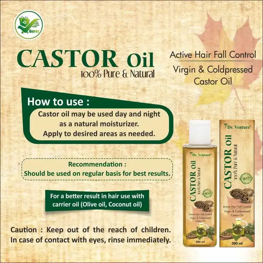 Product Benefits Massage oil, Anti-itch, Breakage control, Colour Protection, Smoothening, Shining, Strengthening Hair Type All Scent PURE CASTOR OIL Liquid Volume 400 Millilitres Item Form Oil Brand Dr. Venture Number of Items 2 Net Quantity 400.0 milliliter Item Volume 200 Millilitres About Castor Oil item: