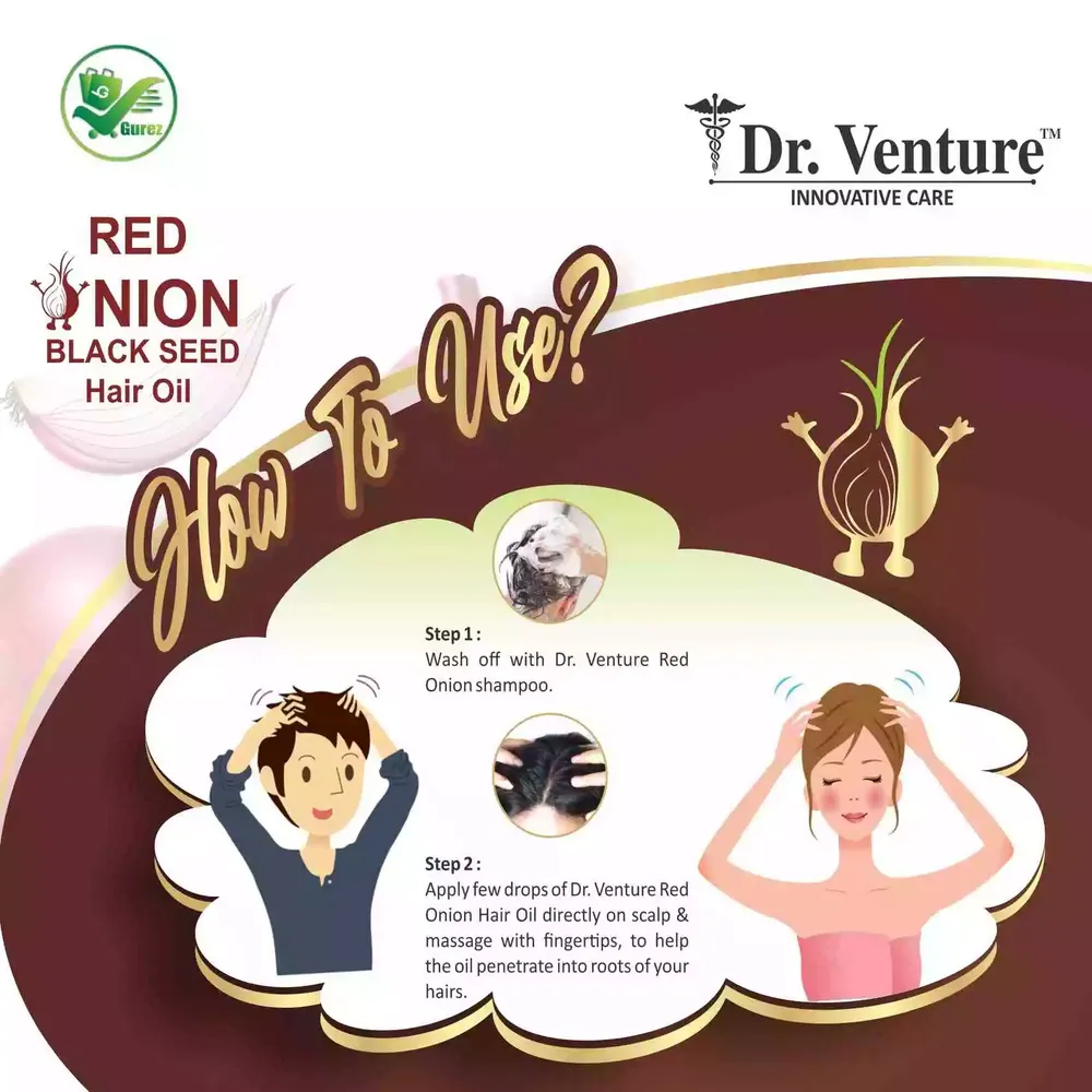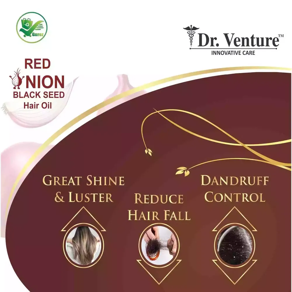 Dr. Venture Onion Hair Oil Made With Onion Black Seed Oil Blend And Cold Pressed Essential Oils Control Dandruff, Reduce Hair Fall, and Nourish Your H