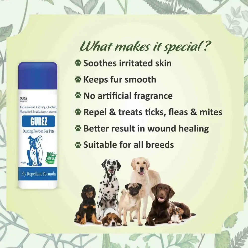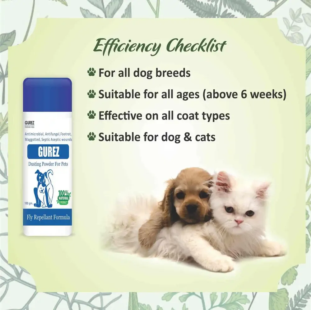 Gurez Herbals India Natural Pet Powder for Dogs and Cats || for Fly Repellant Formula || Anti-ithing, Anti-Fungal Infection (100Gm Powder)