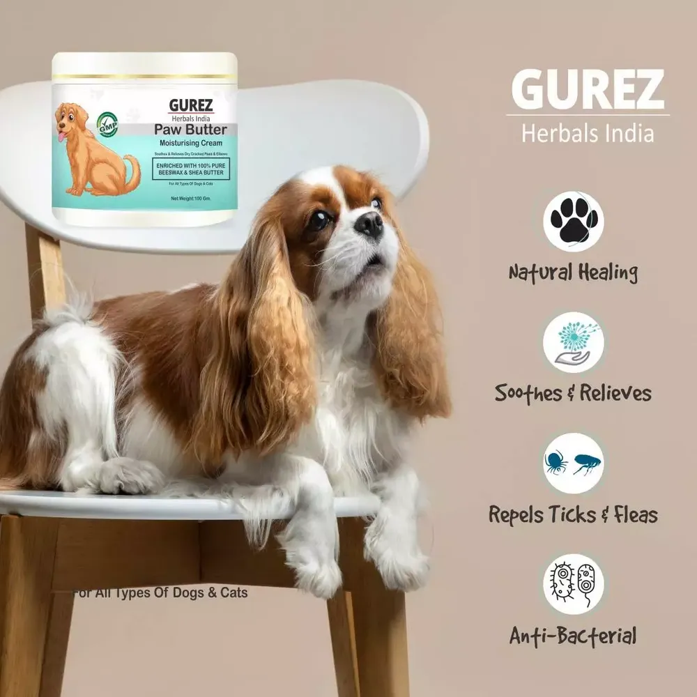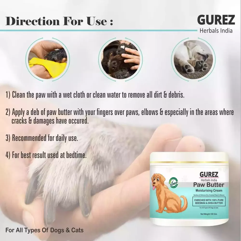 GUREZ Paw Butter Moisturising Cream for Pets Like Dogs and Cats for Cracked, Dry and Chapped Paws and Elbows Enriched with Pure Beeswax and Shea Butte