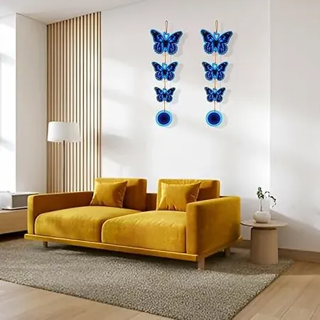 Blue butterfly wall hanging In every home, there are small details that bring life, charm, and meaning to the space. While furniture fills the room, it's the subtle accents—the colors, the artwork, and the symbols—that truly tell your story. Enter the Woodkey Blue Butterfly Wooden Wall Hanging: a stunning piece of wall décor that combines visual beauty, spiritual protection, and modern design all in one. Whether you're redecorating your living room, setting up your first home, or looking for the perfect housewarming gift, this wooden wall hanging adds more than just color—it brings energy, intention, and a little bit of magic. This isn’t just wall décor. The Woodkey butterfly wall hanging is a symbol of transformation, hope, and protection. Butterflies represent change, growth, and spiritual awakening. They’re considered good omens in many cultures. The Evil Eye is an ancient protective symbol that wards off negativity and envy. Combined with butterflies, it becomes a powerful charm for positivity and peace. Together, they make this piece not only a decor item but also a symbolic protection charm for your living space. This blue butterfly wall hanging fits seamlessly into: Entryways – welcome energy and ward off negativity Living Rooms – enhance visual aesthetics and comfort Bedrooms – promote peace and personal transformation Prayer Rooms or Mandirs – invite spiritual blessings Offices – keep your focus and ward off envy or stress Its soothing blue tones and compact design make it adaptable and appealing in both modern and traditional spaces. Looking for a gift under ₹200 that feels personal, meaningful, and beautiful? This Woodkey butterfly evil eye charm makes a perfect choice for: Housewarmings Festivals (Diwali, Rakhi, Navratri) Birthdays Spiritual ceremonies Office welcome gifts Return favors or client gifting Packaged neatly and easy to hang, it requires no extra installation tools—just unwrap and enjoy! Today, our homes are not just places we live—they’re sanctuaries. They protect us, reflect us, and comfort us. This blue butterfly wall hanging is crafted to protect your home with: Durable MDF wood – lightweight yet sturdy Non-fading print – vibrant finish that stays vivid Evil eye symbol – spiritual protection from bad energies Butterfly symbolism – emotional healing, growth, and joy It’s more than just a pretty object—it’s a daily reminder to stay grounded and grateful. Q1: Is this product handmade or printed? Q2: Will the colors fade over time? Q3: Can this be hung outside? Q4: Is it heavy? Q5: What’s the length of the hanging? The Woodkey Blue Butterfly Wooden Wall Hanging isn’t just something you buy—it's something you feel. Every time it catches your eye, it reminds you of growth, protection, and peace. It brings intention into your home—whether you believe in its spiritual symbolism or just enjoy its aesthetic beauty. If your space needs a little more calm, charm, and color, this wall hanging is a simple yet soulful choice. Buy Now on Gurez.comQuick Product Overview