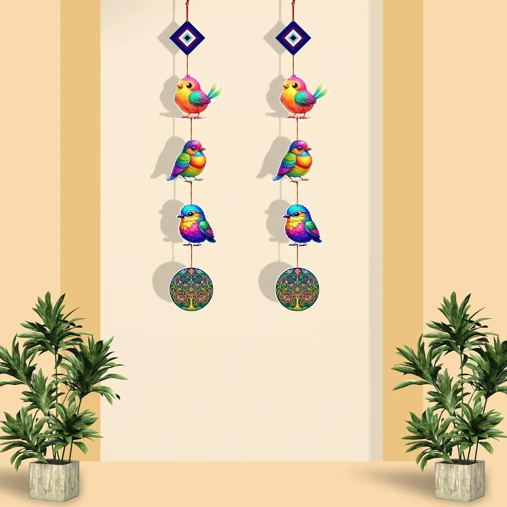Woodkey Colorful Bird Hanging Wall Décor | 3-Bird Wooden String Wall Hanging for Balcony, Entrance & Kids Room Decoration – Eco-Friendly Handcrafted A