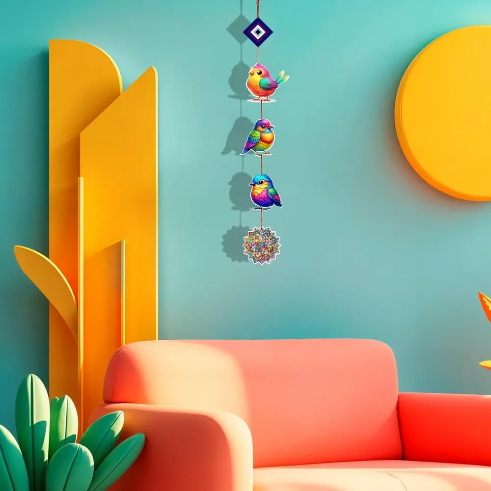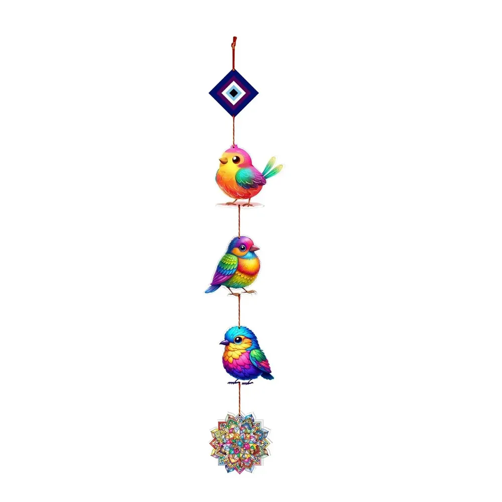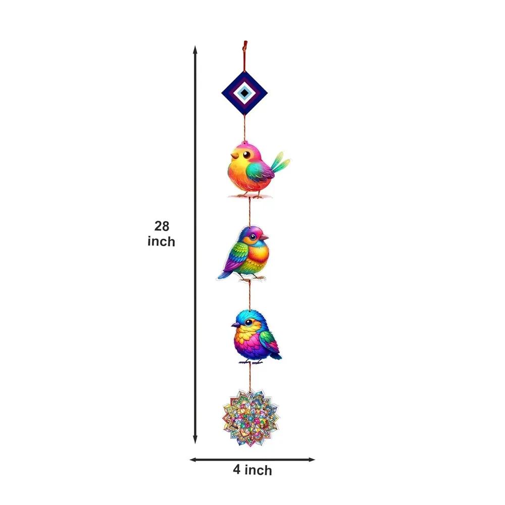 Woodkey Colorful Bird Hanging Wall Décor – 3-Bird Wooden String Hanging for Balcony, Kids Room & Entrance | Eco-Friendly Handcrafted Wall Art