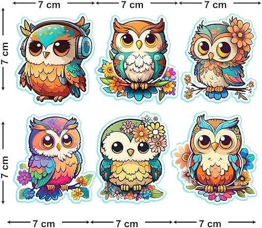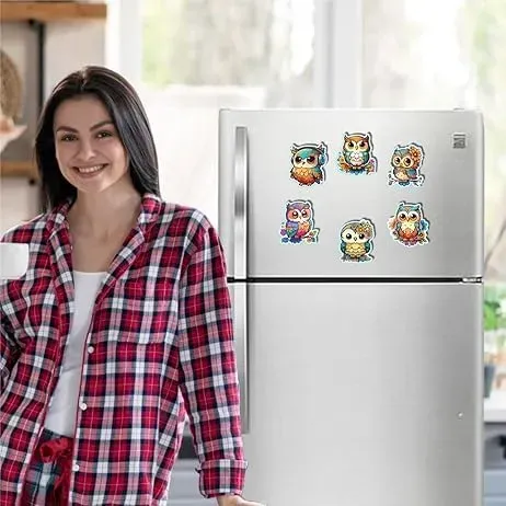 You get 6 colorful owl-themed magnets, each with a unique design and expression.