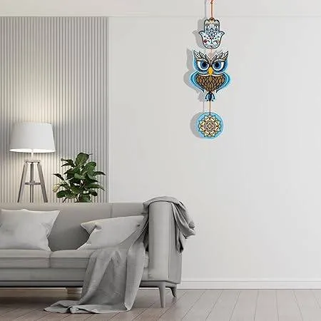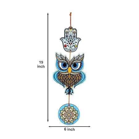 Attribute Details Product Name Woodkey Owl Hamsa Evil Eye Wall Hanging Material Premium MDF Dimensions 19 inch (H) x 6 inch (W) Finish Multicolor Mandala Design Use Case Vastu Decor, Entryway Art, Office Spirituality Handmade Yes, by Indian artisans Ideal Placement Door, Balcony, Home, Office Price ₹150 Sold By Gurez Platform Gurez Meaning Behind the Symbols
