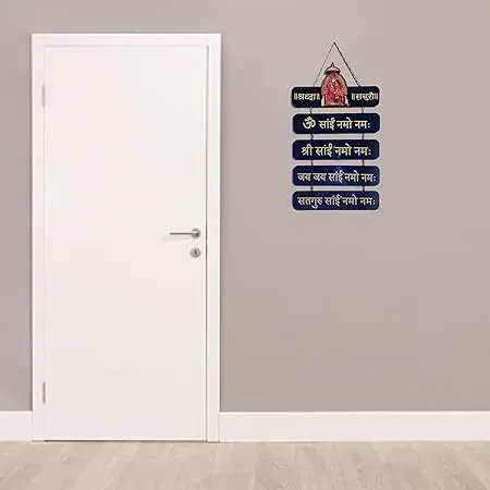 Feature Details Brand Woodkey Material Engineered MDF Wood with Gloss Finish Size Free Design 5 Hindi Quotes + Sai Baba Image in Blue Background Color Palette Multicolor Print Style UV Laminated, Fade-Resistant Ideal Placement Home Temple, Prayer Room, Main Door, Living Room Price ₹189 Gifting Use Perfect for Sai Baba devotees, return gifts, and housewarming presents Delivery PAN India Free Shipping Devotional Meaning & Impact