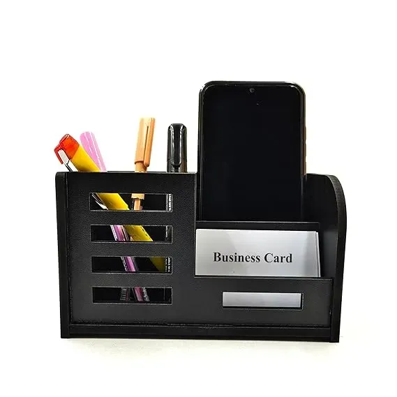 Black Office Desk Organizer In today’s fast-paced work culture, whether you're working from a corporate office or a cozy home setup, desk organization is no longer just about aesthetics — it’s about productivity, space-saving, and comfort. That’s where the Woodkey Wooden Desk Organizer steps in as a game-changer. This beautifully crafted Woodkey Wooden Desk Organizer isn’t just a piece of wooden utility — it's a functional art piece designed to bring order and charm to your workspace. With features like a mobile holder, pen stand, business card holder, and a handy drawer, this multipurpose office desk organizer is the perfect blend of elegance and utility. Why Choose the Woodkey Wooden Desk Organizer? The Woodkey Wooden Desk Organizer is not your typical desk tidy. It is thoughtfully designed to include: Pen stand to hold your writing instruments Mobile holder to keep your device upright and within reach Card holder to store visiting/business cards Compact drawer for small items like clips, USBs, or Post-Its This all-in-one desktop organizer ensures everything you need is right at your fingertips. 2. Premium Black Finish Crafted from high-quality engineered wood, the Woodkey Wooden Desk Organizer boasts a stunning Black finish — a light, elegant wood tone that complements most office or study setups. It's durable, eco-friendly, and has a smooth polished look that reflects professionalism. 3. Perfect for Home & Office Whether you're a student, work-from-home professional, teacher, designer, or entrepreneur, the Woodkey Wooden Desk Organizer enhances your environment by reducing clutter and creating a more focused workspace. 4. Compact Yet Spacious The clever vertical design of the Woodkey Wooden Desk Organizer makes it compact, occupying minimal desk space while offering maximum storage. From pens and highlighters to mobile phones and sticky notes — everything finds a place. 5. Ready to Use – No Assembly Needed Forget the fuss of assembly tools or manuals. The Woodkey Wooden Desk Organizer comes pre-assembled, ready to use straight out of the box. Product Specifications: Working Professionals – Keep your mobile, pens, sticky notes, and cards in one place. The Woodkey Wooden Desk Organizer suits everyone looking for both function and flair in their desk space. How to Use It Effectively Place the Woodkey Wooden Desk Organizer at the center of your desk for quick access. Use the drawer for confidential or small items like USB drives or flashcards. Keep your business cards visible during video meetings. Use the mobile stand during Zoom calls or while watching tutorials. Pair with other Woodkey products for a complete professional setup. Final Thoughts The Woodkey Wooden Desk Organizer isn’t just a storage unit — it’s a productivity booster. At just ₹213, it's a budget-friendly upgrade to your workspace. Compact, elegant, and thoughtfully designed — it checks all the boxes for anyone serious about staying organized. With the rising culture of remote work and digital learning, investing in tools like the Woodkey Wooden Desk Organizer can significantly enhance your efficiency. So if you're looking for a product that makes your workspace more professional, minimal, and productive — this is it. Available now on Gurez.com Frequently Asked Questions (FAQs) No, it is crafted from high-quality engineered wood, which is durable, smooth, and eco-friendly. Q2. Can it hold large smartphones? Yes, the mobile holder in the Woodkey Wooden Desk Organizer is spacious enough for all standard smartphone sizes. Q3. Is it suitable for office gifts? Absolutely! Its premium wooden finish and functionality make it ideal for corporate gifting. Q4. Does the drawer have a lock or magnet? No, the drawer slides smoothly but does not include a lock or magnet. It's ideal for storing small light items. Q5. Is it ready to use? Yes, the Woodkey Wooden Desk Organizer comes fully assembled and ready for immediate use. Q6. What are the dimensions? The Woodkey Wooden Desk Organizer is compact and designed to fit neatly on desks of any size. Detailed size specs are available on the product listing. How to Order: Visit: www.gurez.com